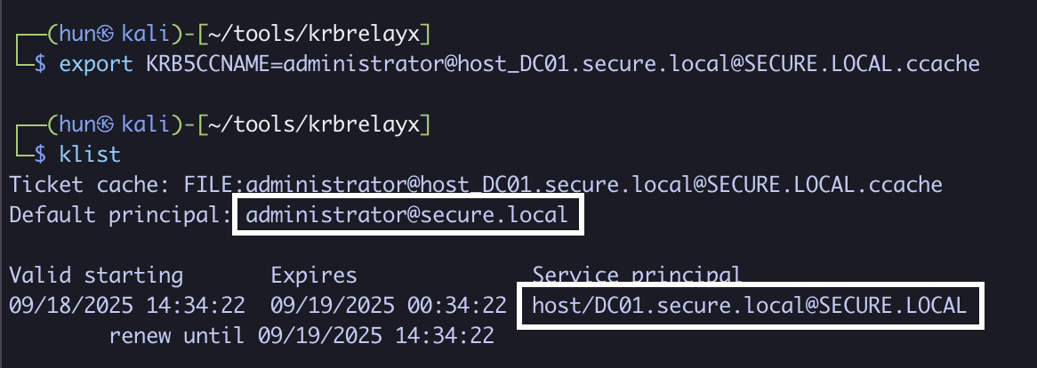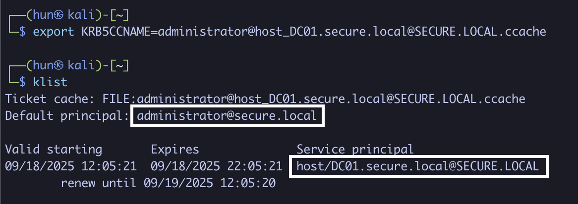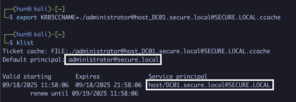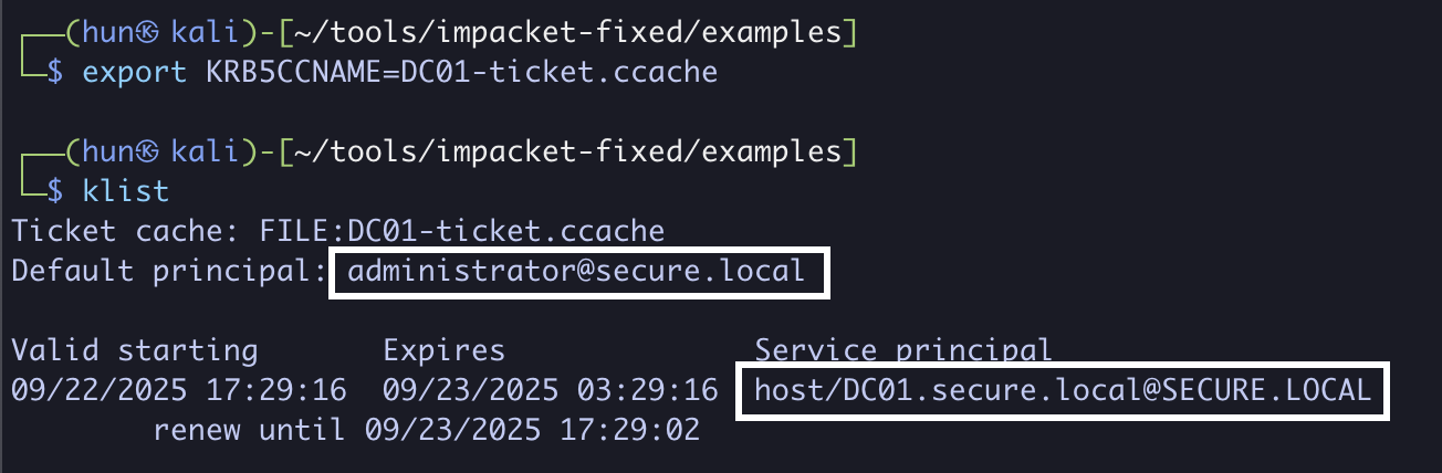 export KRB5CCNAME=DC01-ticket.ccache