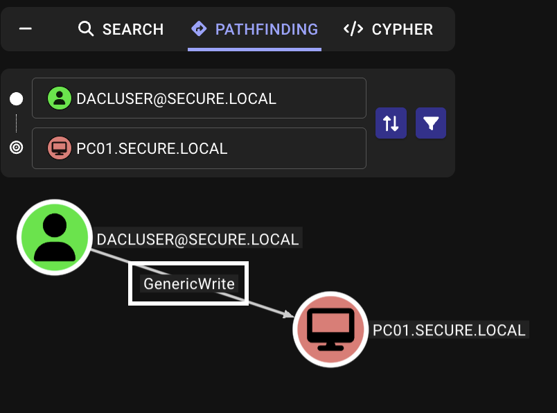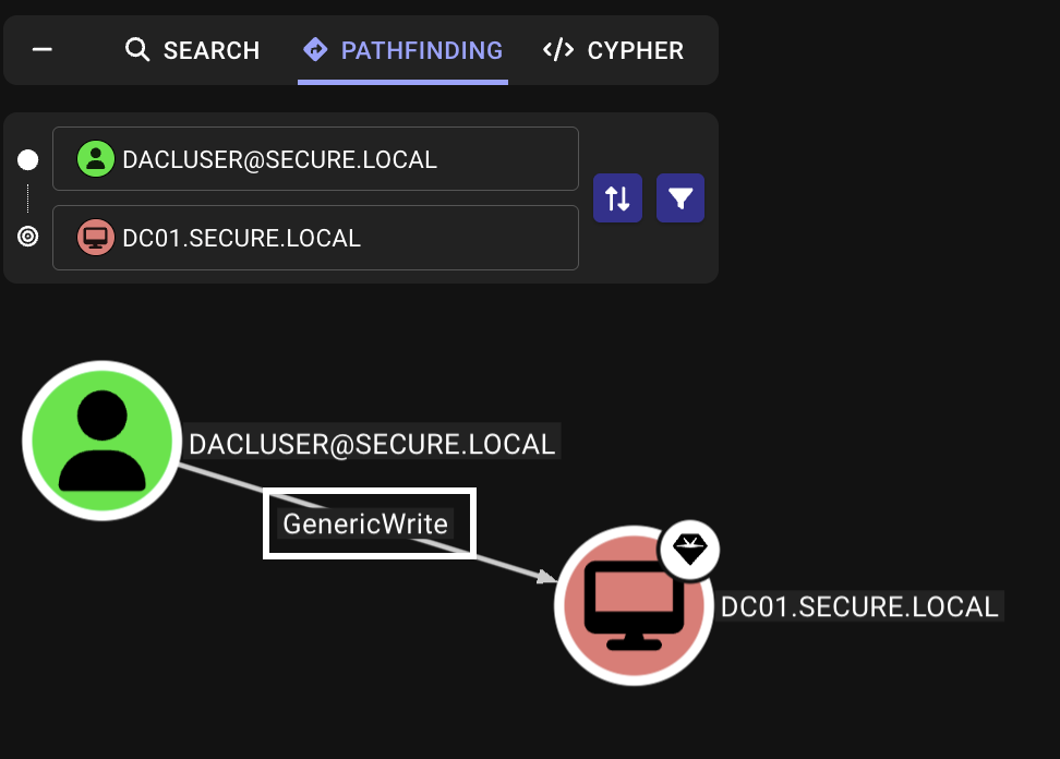 1. Find GenericWrite permissions (dacluser to DC01.secure.local and PC01.secure.local)