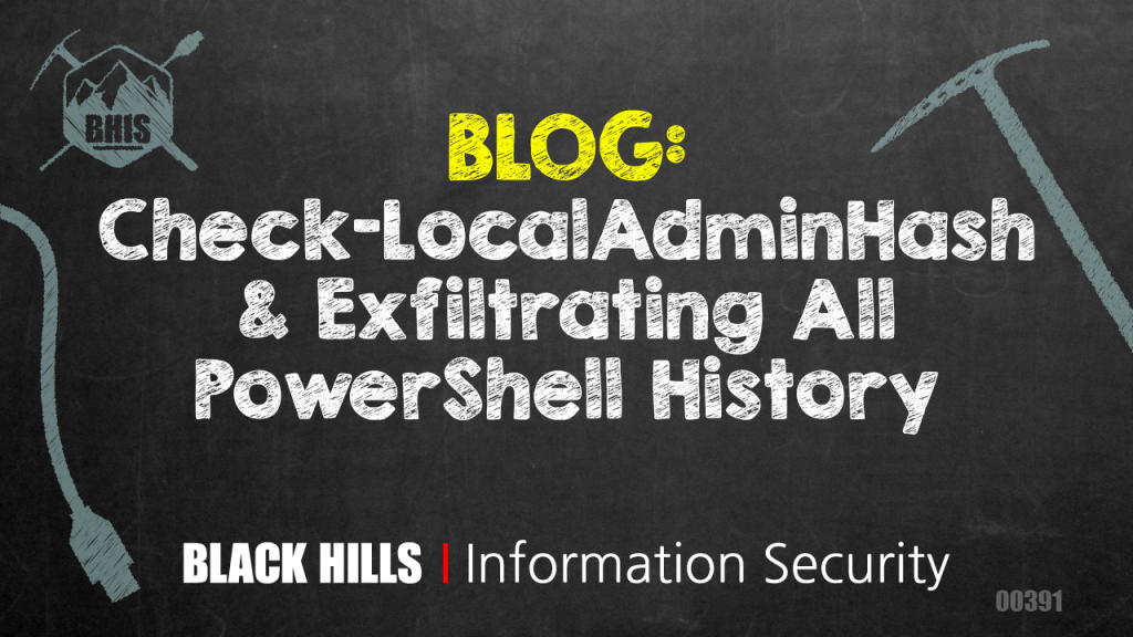 Check-LocalAdminHash is a new PowerShell script that can check a password hash against multiple hosts to determine if it’s a valid administrative credential. It also has the ability to exfiltrate all PowerShell PSReadline console history files from every profile on every system that the credential provided is an administrator of.
