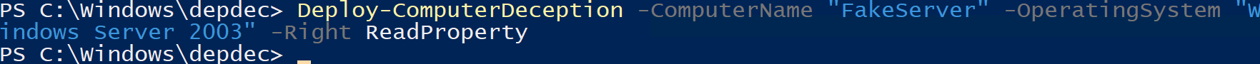 Deploy-ComputerDeception -ComputerName "FakeServer" -OperatingSystem "Windows Server 2003" -Right ReadProperty