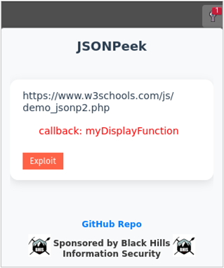 Once you’ve installed the JSONPeek extension,4 you can try it out by browsing to the URL below, opening the JSONPeek extension and clicking the exploit button.