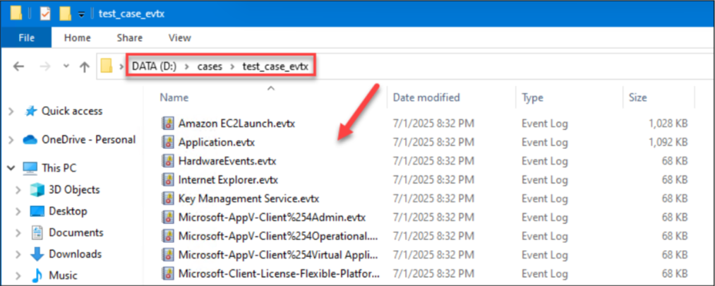 Now that the rules are up to date, I’ll create a JSON timeline from the “test_case_evtx” files for ingestion into SOF-ELK using the following command: