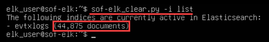 On your SOF-ELK VM, you can check the progress of ingestion and population of Elasticsearch indices by running the following command: