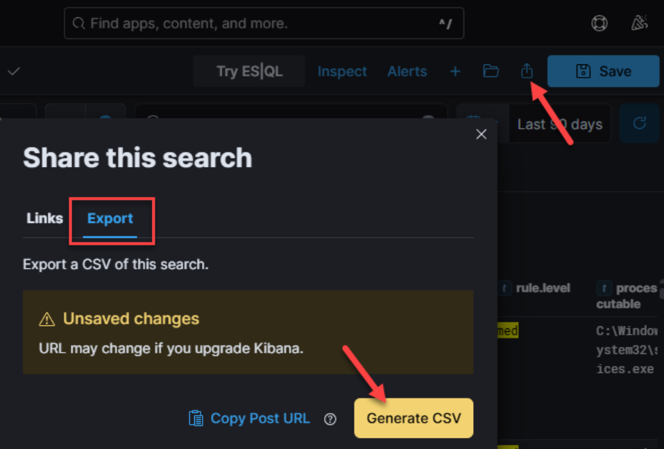 Now you can let your analytical workflow be your guide! Narrow in on date/time pertinent to your investigation, toggle fields on and off to highlight potential answers to your investigative questions, filter in/out results based on any field or multiple fields, expand and contract all the above until you’ve determined attack extents, and export your precisely-filtered data to CSV for safekeeping or to share with others: